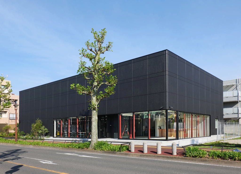 本社の目の前に建つZOZOSTUDIOは、意匠は特に凝らさず、基本的な構造だけが存在する、シンプルな箱を想起させるデザインがコンセプト。外観からも常に進化する創造性が感じられるようなデザインになるように、システム建築という決められたモジュールや外壁素材を使用しなければならない制限のある中で、意匠・設備の設計担当が法規制をクリアさせつつ実際に施工する事を考えながらパズルを解くように工夫と検討を重ねました。その結果、正面道路に面する外壁面はシンプルな箱をイメージさせたデザインを優先して黒い壁とガラスだけ、法規上必要な開口部や設備ガラリは建物裏面にしたいという要望にも対応し、閉塞感のない自由でオープンなデザインが実現しました。